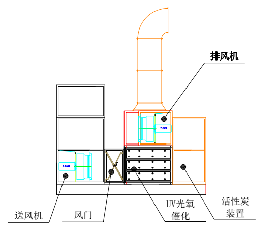 最后,通過三重處理的氣體經(jīng)風(fēng)機抽排到大氣中。